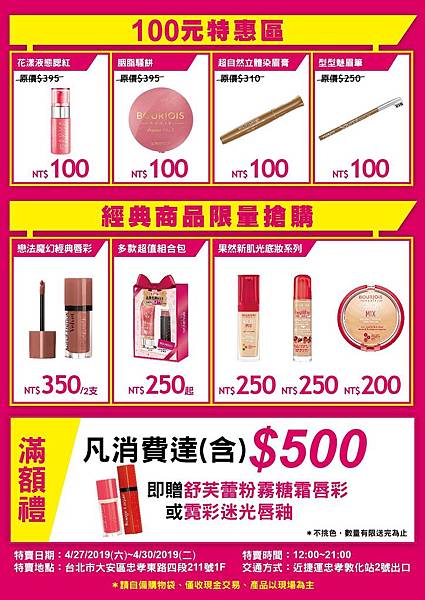 #快閃4天 #忠孝東路211 #彩妝換季 #百元搶購 #母親節特惠加碼